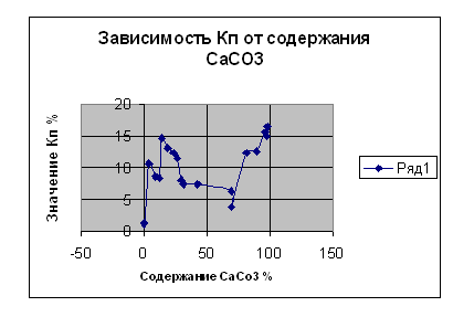 На графиках № 6 и № 7 показаны зависимости Кп и Кпр от содержания в породе CaCO3. В целом, видно, что при увеличении содержания CaCO3 в породе, её коллекторские свойства улучшаются. При этом очень важное значение имеет этап, при котором формировалось пустотное пространство и генезис породы. Так, при осаждении тонкозернистого карбонатного материала формируются породы высокопористые (порядка 70-80 %) и относительно равномернопористые. При формировании карбонатных осадков, состоящих из форменных элементов, в них образуются внутрискелетные и межформенные пустоты.
