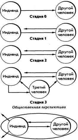 Одной из наиболее полезных моделей социального познания является модель Роберта Селмана (Selman, 1977,1980), который разработал теорию принятия социалъной роли (рис. 2.2). Под принятием социальной роли Селман понимал развитие способности относиться к себе и другим как к субъектам, реагировать нa действия окружающих так же, как на свои собственные, и рассматривать свое поведение с точки зрения других людей. Селман выделял следующие пять стадий развития: