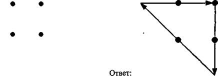 б) Как зачеркнуть, не отрывая карандаша от бумаги, четыре точки, являющиеся вершинами квадрата, тремя прямыми линиями и вернуться в исходную точку? На доске изображается рисунок: