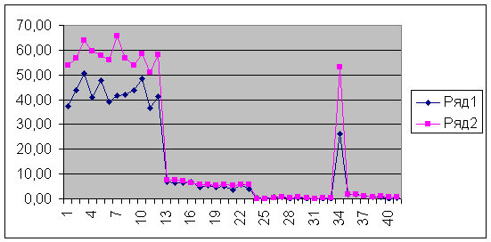На уровне значимости p равном 0,001 данные выборки отличаются по 1-4, 6, 7, 21, 23, 34, и 40 параметрам. Причем у группы здоровых женщин показатели выше, чем у бесплодных.
