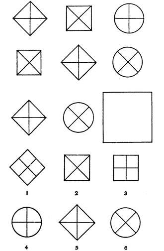 Каждый тест содержит сорок задач. У вас есть ограниченное время (см. выше) для того, чтобы ответить на все вопросы, поэтому работайте как можно быстрее. Не засиживайтесь слишком долго над каким-нибудь вопросом; возможно вы выбрали неверный путь решения, а следующую задачу вы сделаете лучше. С другой стороны, не сдавайтесь слишком легко; большинство задач можно решить, имея немного терпения. Полагайтесь лишь на свой здравый смысл, чтобы решить, когда отказаться от нерешенной задачи. И помните, что в целом сложность задач возрастает к концу теста. Любой человек способен правильно решить некоторое число задач, но никто не сможет правильно решить все задачи в отведенное время. Ваш ответ в каждом случае будет состоять из единственного числа, буквы или слова. Вы можете выбирать из нескольких предложенных вариантов или придумывать правильный ответ. Пишите свой ответ в указанном месте. Если вы не можете ответить на вопрос, не стройте догадок; однако если у вас есть идея, но вы не уверены полностью, что это действительно правильный ответ, все равно укажите ее. В тестах нет "хитрых" вопросов, но вам всегда придется рассматривать множество путей подхода к решению задачи. Убедитесь, что вы понимаете, что от вас требуется, прежде чем приступать к решению задачи; вы зря потратите время, если сразу перейдете к решению, не попробовав выяснить, в чем заключается задача. Для некоторых задач существуют альтернативные ответы, которые действительно удовлетворяют всем требованиям, на которые случайно может натолкнуться читатель. В этом случае читатель может считать свой ответ правильным.