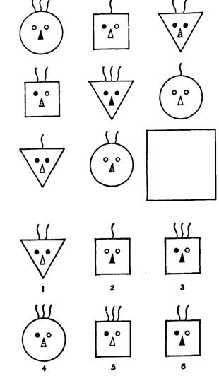 18. Какая из шести пронумерованных фигур подходит для свободной места в квадрате? (Напишите ее номер в квадрате.)