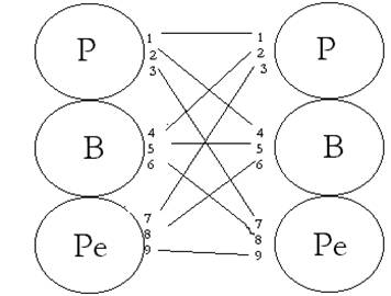 Дополнительные трансакции между "равными психологическими состояниями" представлены линиями (1-1)2, (5-5)2 и (9-9)2 . Трансакции (2-4) (4-2), (3-7) (7-3) и (6-8) (8-6) тоже дополнительные. Все остальные комбинации образуют пересекающиеся трансакции, и на диаграмме они тоже пересекаются: например (3-7) (7-3), - двое людей свирепо уставились друг на друга. Если никто из них не уступит, коммуникация прекратится и они разойдутся в разные стороны.