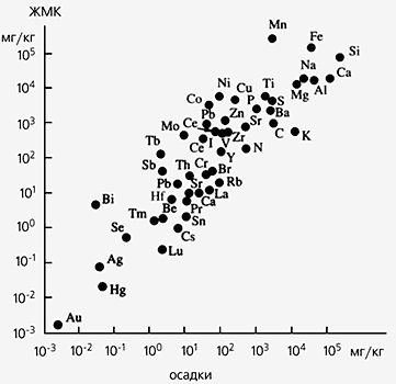 Важно отметить, что в океанской среде Fe образует собственные минералы или входит в состав других (глинистых) как в окисленной, так и в восстановленной (бескислородной) осадочной толще. Mn же в твердой фазе здесь может существовать только в окислительных условиях в форме свободных гидроксидов в высшей степени окисления, близкой к MnO2, но этот предел как правило не достигается из-за сорбционного связывания гидроксидом некоторого количества MnO (обычно 1-2%), за счет окисления которого постепенно наращивается его собственная фаза. Поэтому точнее состав гидроксидов отражает формула: nMnO·MnO2·mH2O. В восстановленных осадках это соединение растворяется, восстанавливаясь до двухвалентного состояния (MnO), и мигрирует к их поверхности в сторону кислород-содержащей среды. Именно это происходит в окраинных районах океанов, где скорости накопления осадков речного стока велики и это создает восстановительные условия в их толще. По существу, окраинные районы океанов являются “фабрикой”, поставляющей Mn и, в меньшей мере, Fe в океан. “В меньшей мере” означает не абсолютное количество Fe, а тот факт, что часть его, поступившая с речным стоком, связывается в восстановленном осадке в форме сульфидов или входит в состав других минералов и выводится из океанского рудогенеза. Это - первый этап разделения этих металлов в океане. В классических трудах Н.М. Страхова показана дальнейшая судьба этих и других металлов в океане и их накопление в благоприятных фациальных условиях (высокие содержания растворенного кислорода, низкие скорости седиментации), которые соответствуют глубоководным - пелагическим областям океанского дна, где и формируются наибольшие концентрации конкреций. Аналогичные условия возникают и на вершинах подводных обнажений, не перекрытых осадком, независимо от их местоположения в океане. В таких случаях нередко формируются рудные корки, особенностью которых является обогащенность Со, поэтому они называются кобальтоносными.