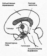 Первая наиболее стройная концепция, связывающая эмоции с функциями определенных структур мозга, была опубликована в 1937 г. И принадлежит американскому невропатологу Дж.Пейпецу. Изучая эмоциональные расстройства у больных с поражением гиппокампа и поясной извилины, он выдвинул гипотезу о существовании единой системы, объединяющей ряд структур мозга и образующей мозговой субстрат для эмоций. Эта система представляет замкнутую цепь и включает: гипоталамус - передневентральное ядро таламуса - поясную извилину - гиппокамп - мамиллярные ядра гипоталамуса. Она получила название круга Пейпеца (см. рисунок). Позднее П.Мак-Лин в 1952 г., учитывая, что поясная извилина как бы окаймляет основание переднего мозга, предложил назвать ее и связанные с ней другие структуры мозга лимбической системой (limbus — край). Источником возбуждения для этой системы является гипоталамус. Сигналы от него следуют в средний мозг и нижележащие отделы для инициации вегетативных и моторных эмоциональных реакций. Одновременно нейроны гипоталамуса через коллатерали посылают сигналы в передневентральное ядро в таламусе. По этому пути возбуждение передается к поясной извилине коры больших полушарий.