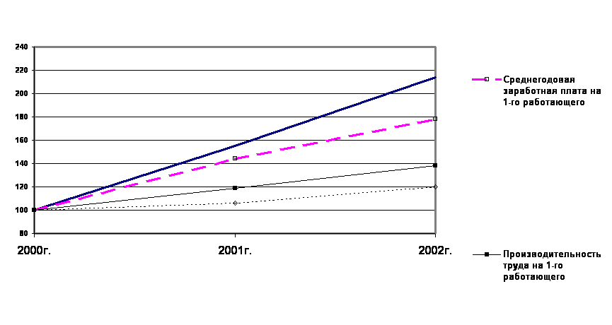Сравнивая темпы роста среднегодовой заработной платы и производительности труда на одного работающего за три года, наблюдается опережение темпов роста заработной платы (178%) по сравнению с темпами роста производительности труда (138%).