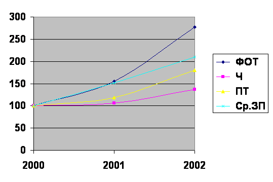 Однако, сравнивая два смежных года (т.е. 2001 и 2002г.г.) можно отметить опережающие темпы роста производительности труда (151%), по сравнению с темпами роста среднегодовой заработной платы (138%), что в целом положительно характеризует производительно-хозяйственную деятельность предприятия.