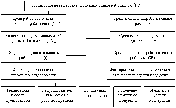 Рисунок 1. Взаимосвязь факторов, определяющих среднегодовую выработку продукции работника предприятия