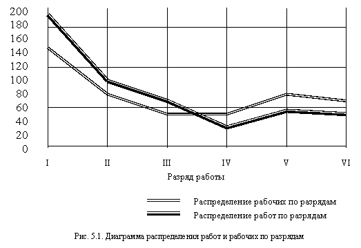 Представим распределение работ и рабочих по разрядам в виде диаграммы (см. рис. 5 1.).