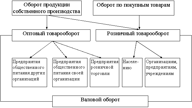 В состав розничного товарооборота предприятий общественного питания включаются: оборот по продаже собственной продукции и покупных товаров непосредственно населению через обеденные залы, буфеты, в виде отпуска на дом, а также от реализации этой же продукции и товаров через магазины кулинарии, палатки, развозную и розничную сеть; оборот от реализации готовой продукции /блюд/ и полуфабрикатов собственного производства различным предприятиям, организациям и учреждениям для питания обслуживаемого контингента.