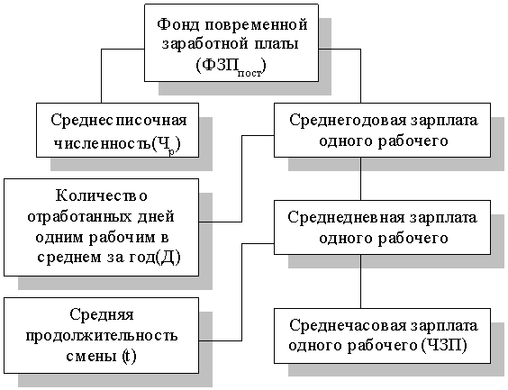 Рис. 2. Детерминированная факторная система фонда заработной платы рабочих-повременщиков