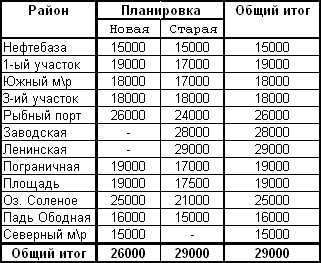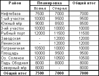 Из этих таблиц видно, что цена на квартиры достигает максимального придела в районе ул. Ленинская(29000$). За самую низкую стоимость квартиры можно купить в районе Нефтебазы(7000$- для квартир старой планировки и 7500$- для квартир новой планировки). А средняя стоимость варьируется в пределах 14100$-14300$ - это такие районы, как Пограничная, Площадь, 1-ый участок и 3-ий участок.