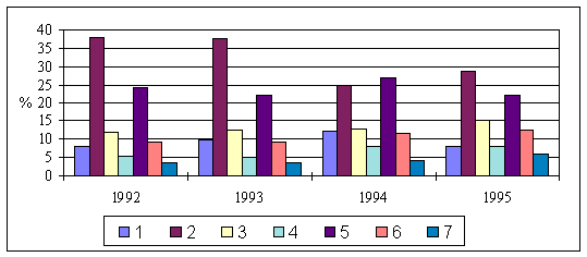 Значительное положительное влияние на сальдо операций с капиталом оказывает приток валюты, чье происхождение со статистической точки зрения не вполне ясно. Экспертные оценки объема подобного капитала в 1995г. колеблются от 200 до 250 млн.долл.[3]