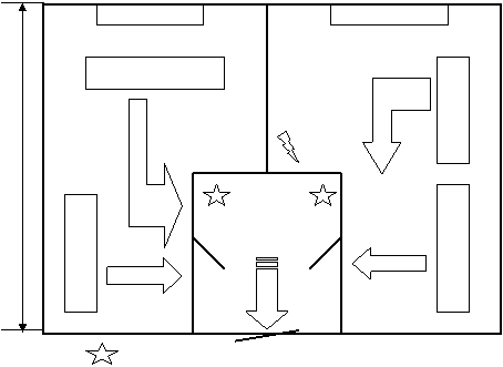 На случай возникновения пожара необходимо предусмотреть безопасную эвакуацию людей. При пожаре люди должны покинуть помещение в течение минимального времени. В соответствии с СНиП 11-2-80 число эвакуационных выходов из зданий, помещений должно составлять не менее двух. Отобразим, на рисунке, план эвакуации из отдела управления риском при пожаре.