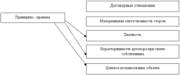 · договорная система отношений между арендатором и арендодателем как равноправными заинтересованными партнерами;