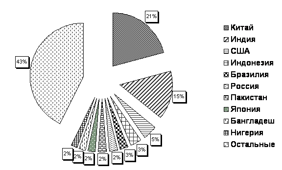 О темпах роста населения нашей планеты можно судить по следующим показателям. К началу XX в. на ней проживали 1,62 млрд. человек. За следующие 60 лет число жителей земного шара удвоилось, а еще через 25 лет утроилось. В 2000 г. мировое сообщество насчитывало более 6,1 млрд. жителей. По расчетам, при сохранении сегодняшних темпов роста населения к 2050 г. на Земле будут жить от 8,9 млрд. до 10 млрд. человек.