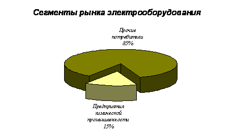 Маркетинговые исследования показали, что рынок электрооборудования состоит из различных сегментов. Специфика выпускаемой нами продукции (СГД) состоит в том, что эти двигатели лучше всего использовать при работе с высоко инерционной нагрузкой. Это становится возможным благодаря уникальным свойствам механической характеристики двигателя. Работа с высоко инерционной нагрузкой наиболее характерна для предприятий химической промышленности, которые составляют 15 % от общей емкости рынка.