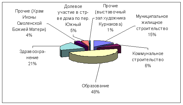 Из таблицы видно, что расходы на капитальное строительство за 2002 год составили 21 200 тыс.рублей или 100% от утвержденных на год ассигнований, в том числе:
