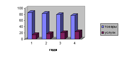 Среднемесячный прирост в целом за 1997г. По сравнению с 1996г. Составил для платных услуг - 1,9%, для розничного товарооборота - 0,4, для промышленности потребительских услуг- 0,3, для всего ВВП - 0,0. У строительства и сельского хозяйства аналогичный показатель имел отрицательное значение, что позволяет сделать вывод, что потребительские услуги в 1997 году стали самыми динамичным сектором российской экономики. Однако в 1998 году состоялся экономический кризис, который изменил не только столь оптимистическую тенденцию, но и изменил всю структуру “товары/услуги”.