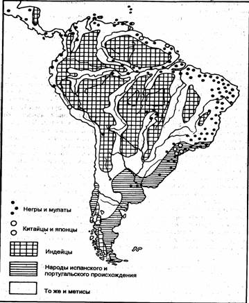 Так сформировалась современная этническая карта Латинской Америки. Большинство стран этого региона отличается весьма сложным этническим составом. В Бразилии насчитывается около 80, в Мексике и Аргентине – более 50, в Боливии, Венесуэле, Перу, Колумбии, Чили – более 25 различных народов.
