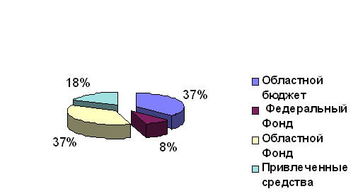 В целом на финансирование реализации мероприятий Программы в 2001-2002 году требуется 49 000,0 тыс. рублей. В структуре источников финансирования наибольший удельный вес занимают средства областного бюджета и областного Фонда (Рис. 3).