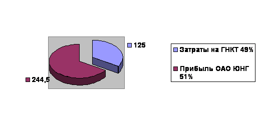 Таким образом, прямое дополнительное увеличение валовой выручки ОАО «ЮНГ» в результате применения технологии ГНКТ, за счет сокращения продолжительности общего цикла ГРП и за счет увеличения МРП работы электроцентробежных насосов может составить 369,5 миллионов рублей за календарный год.