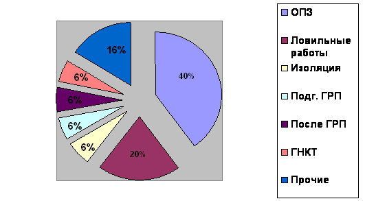 Наряду с бригадами КРС ремонтами скважин занимался комплекс ГНКТ, принадлежащий Управлению КРС-1 (г. Нефтеюганск). Как следует из диаграммы 2, комплекс гибкой насосно-компрессорной трубы выполнял практически те же операции, что и традиционные установки КРС: