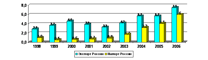 Экспорт России в Японию по итогам 2004 г. возрос на $1,5 млрд. или на 36% и составил $5,7 млрд. По отношению к 2002 г. объем российского экспорта в долларовом выражении увеличился на $2,4 млрд. или на 73%.