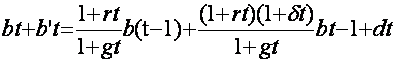 В данном выражении не отражается валютная структура долга. Чтобы учесть динамику внутреннего и внешнего государственного долга, рассмотрим следующее уравнение: