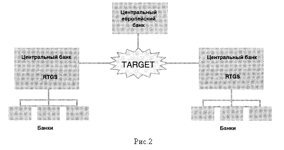 Центральные банки стран - членов Европейского союза намерены внедрить новый механизм клиринговых расчетов в январе 1999 г. Эта общеевропейская система, известная под названием TARGET (Trans- European Automated Real Time Gross Settlement Express Transfer System - общеевропейская автоматизированная система мгновенного осуществления безналичных расчетов в реальном масштабе времени), свяжет между собой системы клиринговых расчетов RTGS (Real Time Gross Settlement Systems - системы проведения крупных расчетов в реальном масштабе времени) стран-участниц. При помощи TARGET будут производиться международные расчеты в евро.