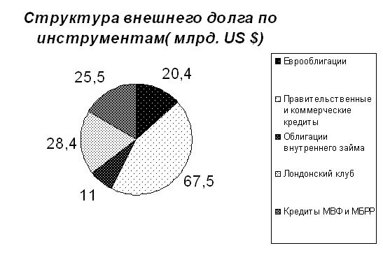 Не уделялось внимание структуре и эффективности новых заимствований и способности своевременно возвращать долги. Отсутствие промышленной политики, твердой линии на направление внешних ресурсов на производство в производство для преодоления спада и возобновления экономического роста обусловило их концентрацию в финансовой сфере, а также использование для покрытия бюджетного дефицита. Эти тенденции на фоне непрерывного сокращения ВВП, промышленного производства и инвестиций в реальный сектор экономики свидетельствовали о нарастании кризиса внешней задолженности. Рыночные институты регулирования внешнего долга в трансформационный период без вмешательства государства оказались не способными противостоять стихийным процессам в стране. Следствием неуправляемых процессов в экономике стало перерастание кризиса внешнего долга в системный финансовый кризис августа 1998 года.