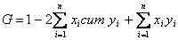 Коэффициент G изменяется в интервале от 0 до 1. Чем ближе значение G к 1, тем выше уровень неравенства (концентрации) в распределении совокупного дохода; чем ближе он к 0, тем выше уровень равенства.