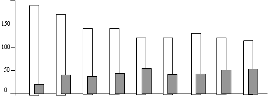В январе-мае 1999г. выбытие работников на 95,8% компенсировалось приемом новых кадров, в соответствующем периоде прошлого года прием на работу превышал выбытие на 0,6%.