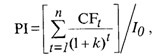 Если предполагаются длительные затраты и длительная отдача, формула для определения PI имеет такой вид: