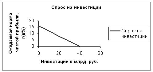 Зная факторы, влияющие на принятия инвестиционного решения отдельной фирмы, перейдём к общему спросу на инвестиционные товары со стороны всего предпринимательского сектора. Предположим, что каждая фирма рассчитала ожидаемую норму чистой прибыли от всех инвестиционных проектов, и эти данные были соединены воедино. Эти оценки можно суммировать, то есть последовательно сложить, задавая вопрос, какова стоимость инвестиционного проекта при ожидаемой норме прибыли.