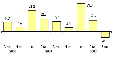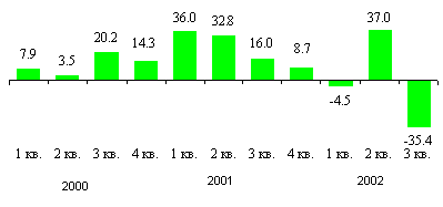 Под влиянием кризиса на мировом фондовом рынке британские портфельные инвестиции за рубежом в январе-сентябре 2002 года имели отрицательное значение, т.е. наблюдался их возврат в размере 2,9 млрд.ф.ст.