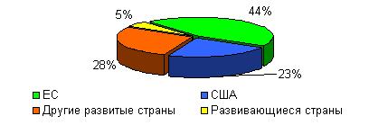 Географическая структура расходов британских компаний на приобретение активов иностранных фирм