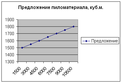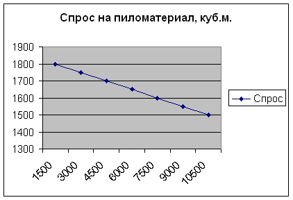 Предположим, что на местном рынке люди приобретут разное количество м3 пиломатериала, если их цена будет снижаться.