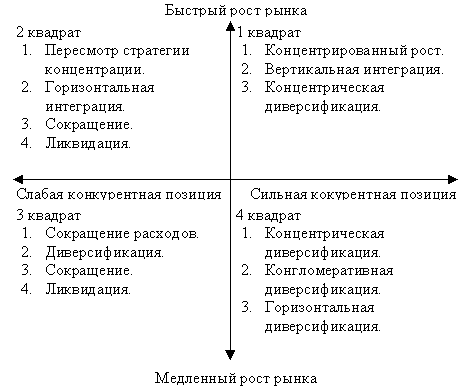 Американские специалисты в области стратегического планирования предложили матрицу выбора стратегии.