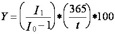 Фактически, индекс эффективности вложений в ГКО - это не что иное, как множитель приращения первоначальной суммы, инвестированной в государственной области в какой-либо момент времени (для практических целей удобно начинать отсчёт индекса с первого рабочего дня каждого нового года). Поэтому, доходность вложений за определённый период можно рассчитать с помощью несложной формулы: