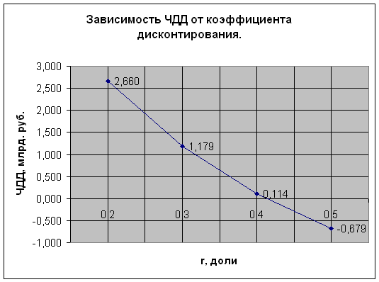 Из графика следует, что при ВНД около 41,5% будет получена величина ЧДД равная нулю. Таким образом, ВНД существенно превышает величину коэффициента дисконтирования, принятую в проекте (20%). Вследствие этого можно считать данный проект безубыточным.