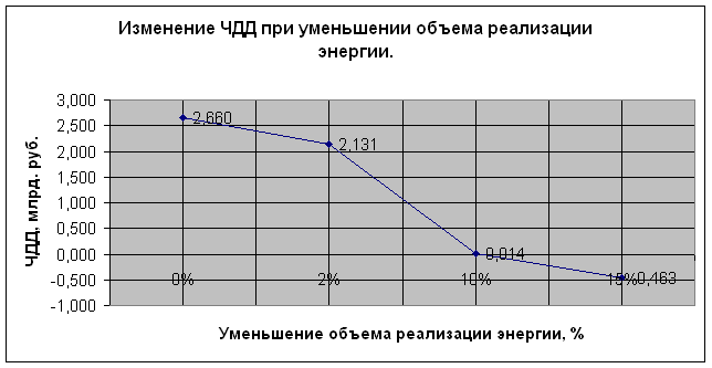 Изменение ЧДД при уменьшении объема реализации энергии