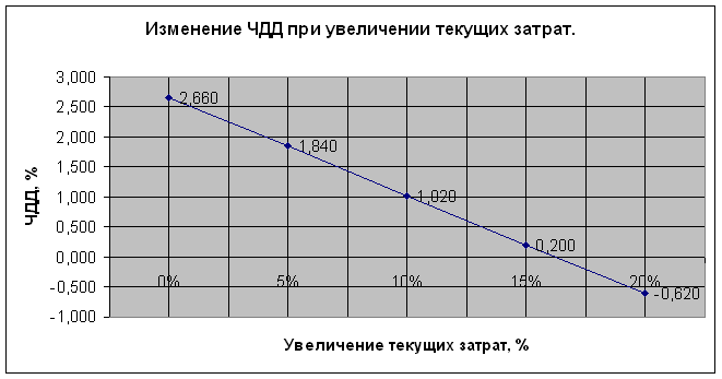 Из полученных данных следует, что увеличение текущих затрат должно быть не более, чем на 16,22% ЧДД