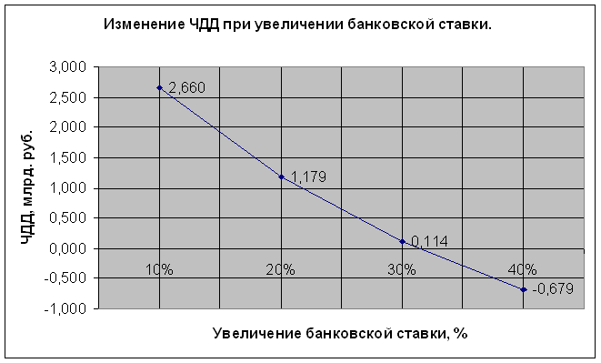 Оценка чувствительности и устойчивости к изменению внешних факторов состоит в исследовании возможностей изменения значений банковской ставки и премии за риск. Это исследование проводится аналогично проведенным выше расчетам.