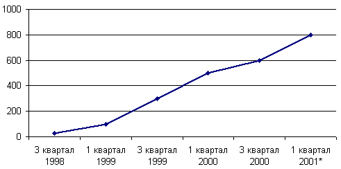 Несмотря на высокую корреляцию конъюнктуры российского рынка с ситуацией в мире, особенно с ситуацией на NASDAQ, который продолжает свое падение, количество вновь зарегистрированных интернет-магазинов в России продолжает увеличиваться. Основными причинами этого, казалось бы, на первый взгляд противоречия являются особенности развития и отличительные черты российского Интернета. Наиболее выскоие темпы роста интернет-магазинов наблюдались в 2000 году, когда российские предприниматели торопились занять свое место в Сети и смело открывали новые магазины.