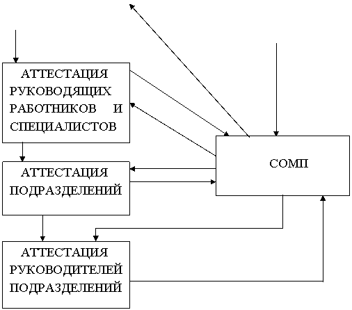 Организация проведения аттестации на предприятиях как в период аттестационных сессий, так и в межсессионный период осуществляется постоянно действующей службой организационно-методической поддержки (СОМП), На нее возлагаются задачи непрерывного сбора информации для аттестации, подготовки необходимой организационно-распорядительной документации, координации деятельности аттестационных комиссий, СОМП также обобщает предложения по корректировке системы аттестации. а в случае необходимости –по ее реинжинирингу.