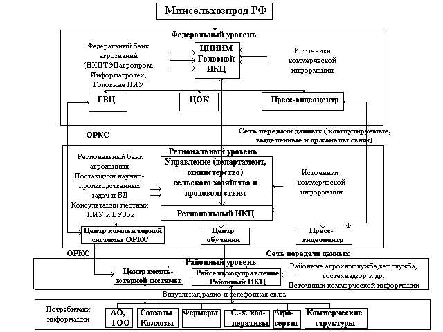 Структура. Консультационная служба АПК является элементом системы государственного управления сельским хозяйством, создается в рамках Министерства сельского хозяйства и продовольствия России, территориальных сельхозорганов субъектов Федерации и районных администраций и, соответственно, имеет трехуровневую иерархическую структуру, включая федеральный, региональный и районный уровни.