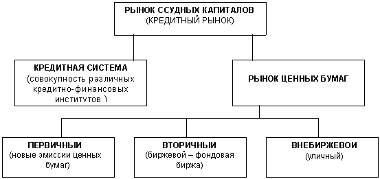 Кредитный рынок - это общее обозначение тех рынков, где существуют предложение и спрос на различные платежные средства. Кредитные сделки опосредуются, как правило, кредитными институтами (банками и др.), которые берут взаймы и ссужают деньги, или движением различных долговых обязательств, которые продаются и покупаются на рынке ценных бумаг.