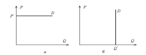 Рис. 3 Крайние случаи эластичности: а — спрос абсолютно эластичен, б — спрос абсолютно неэластичен