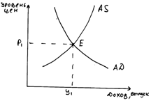 МЭР в точке пересечения AD и AS показывает равновесный объем ВНП, который равен потенциальному объему ВНП.